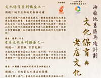 |  油麻地舊區再造計劃 文化保育及老店文化系列講座