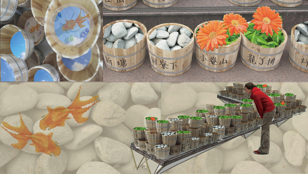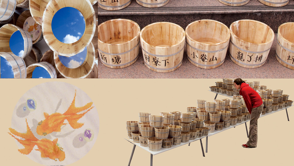 雖然隨著時代進步,膠盆代替木盆,城市化帶來各樣的方便,水再不是從水井出,木盆盛載的也不是水,郤是不少人對木盆的記憶,勾起新界村鄉恬靜的影像。今次許伯通過傳統木盆做法,手做出了一百個盛載祝福的百寶盆,希望和林村居民用百寶盆一起創作,帶出村鄉生活的樸實回憶。