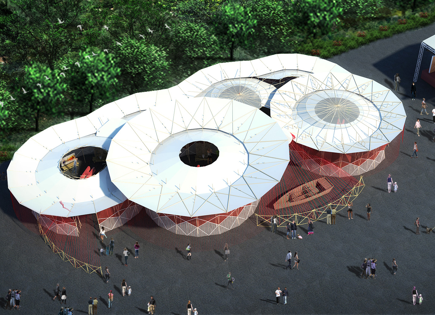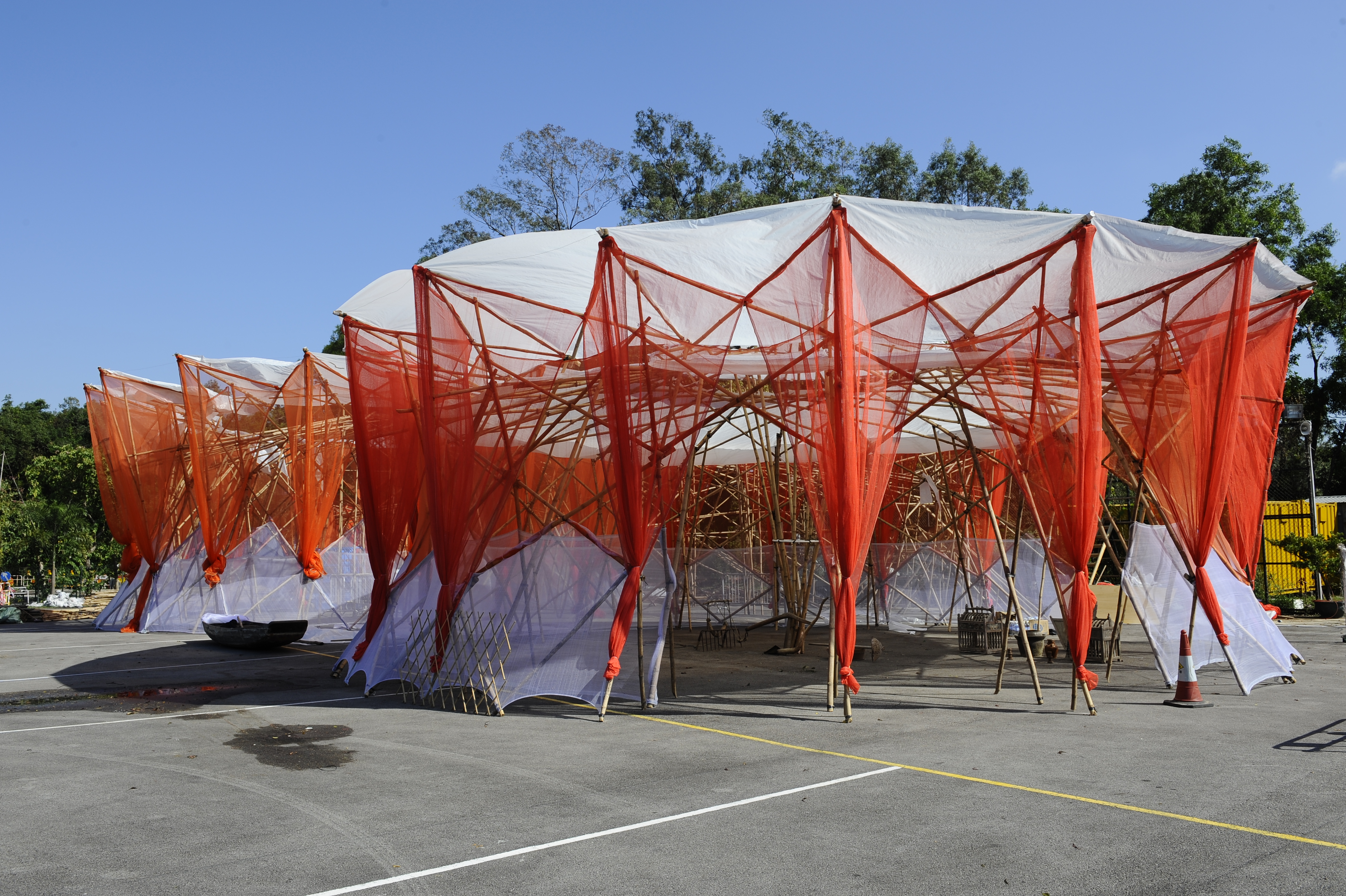 大埔林村許願廣場位於香港新界大埔林村中的放馬莆村,是香港著名的許願勝地。本年度香港賽馬會「港文化·港創意」展覽以「樂地·生根」為主題,希望能為這個旅遊勝地帶來更多大埔文化和藝術氣息。是次展覽館更參考傳統「三進」建築特色以竹棚搭建,展示鄉村的傳統文化特色。